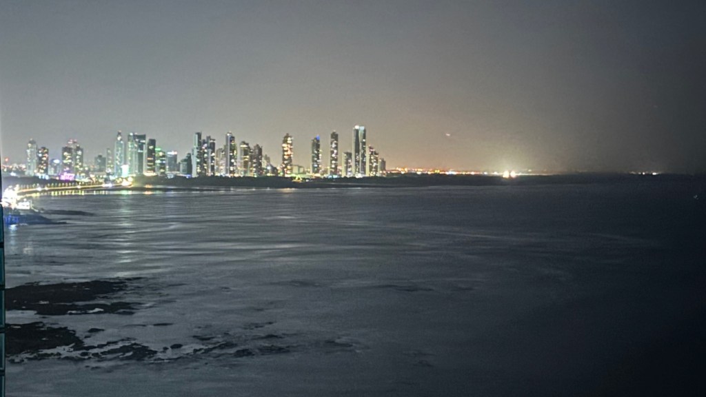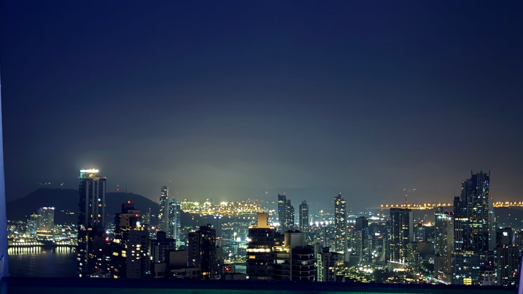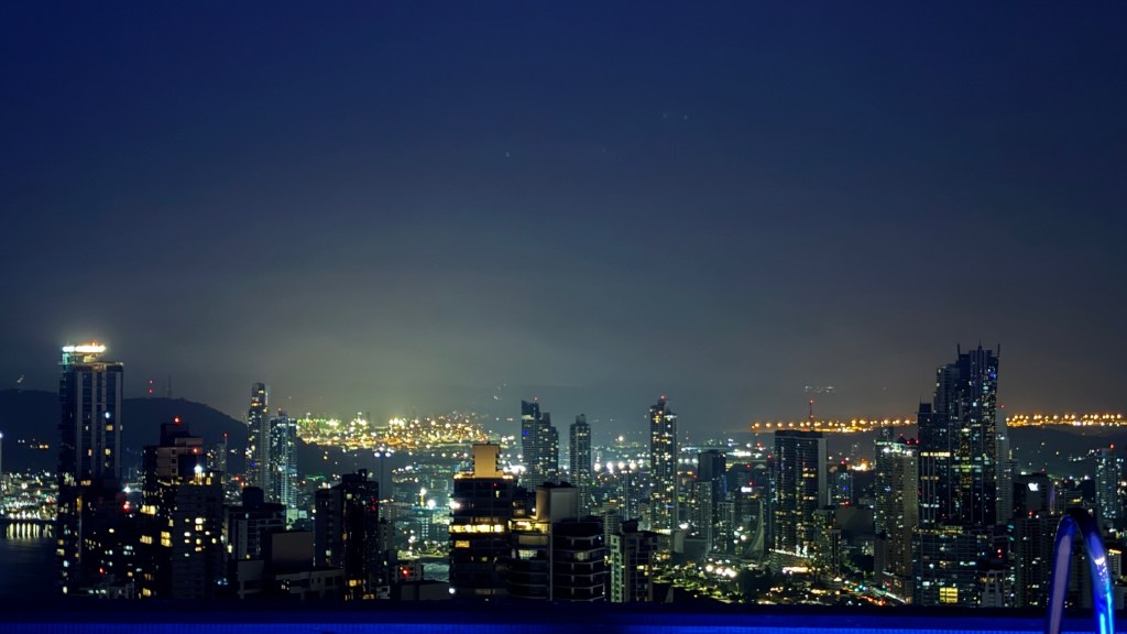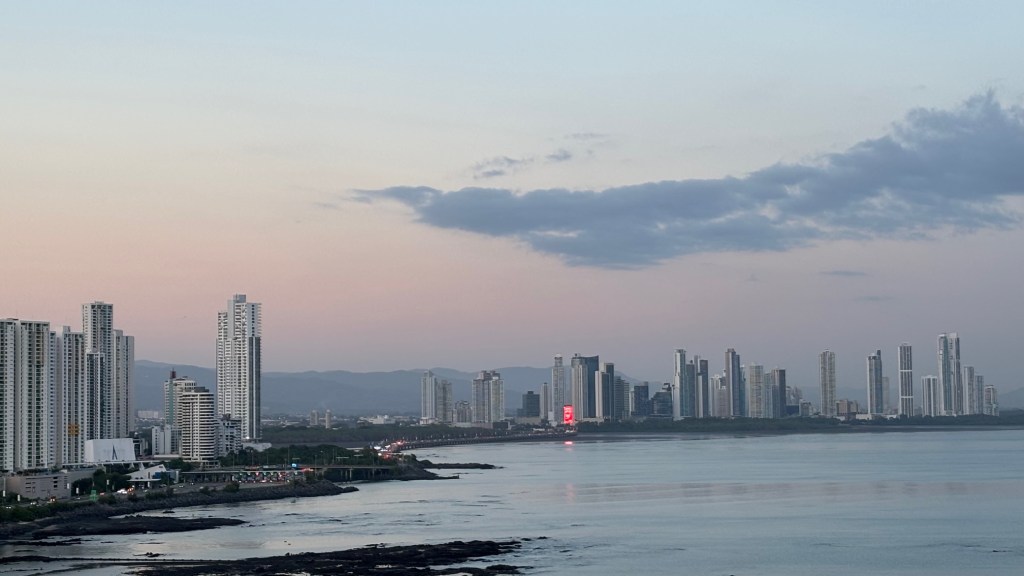 Various photographs of the Panama City skyline taken at different times of the day including morning, evening, and nighttime.