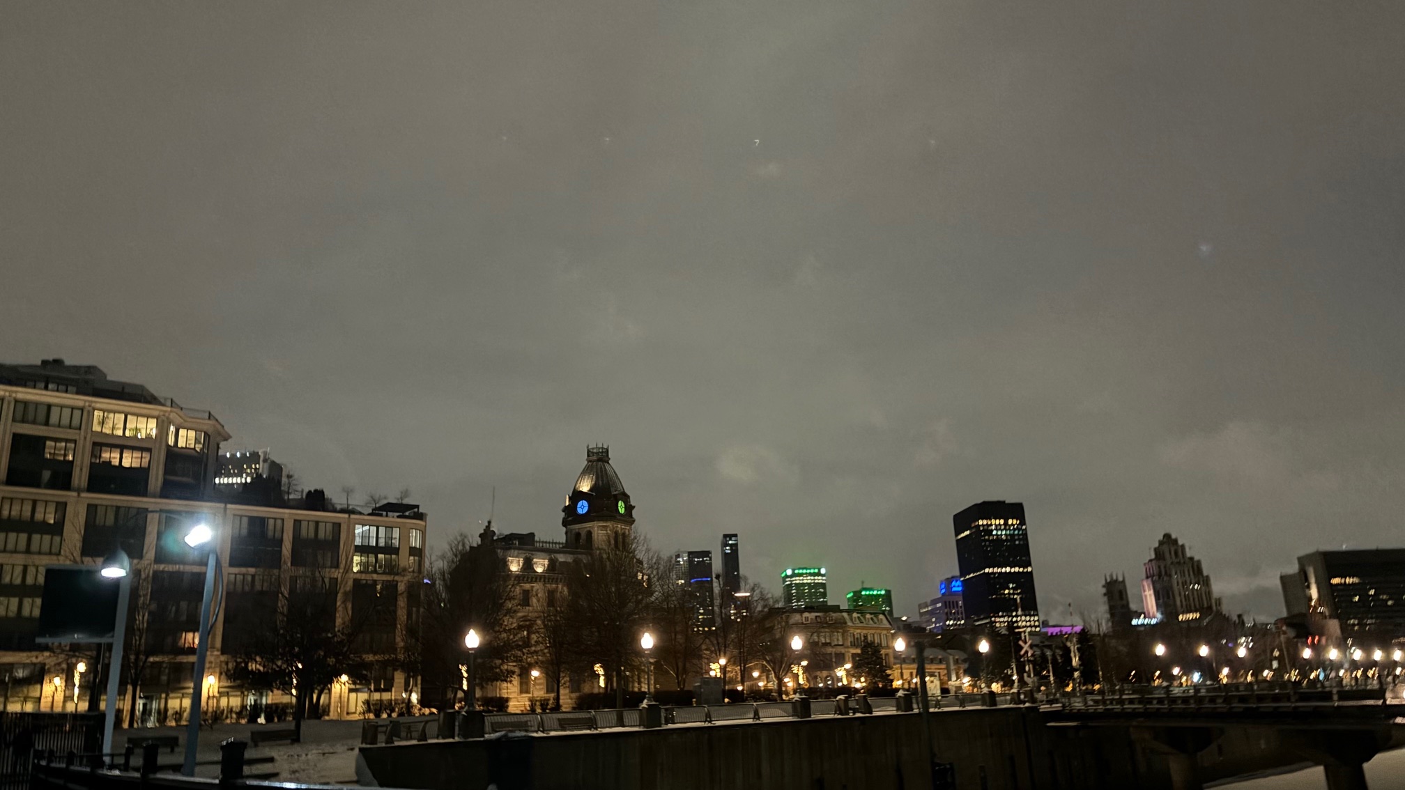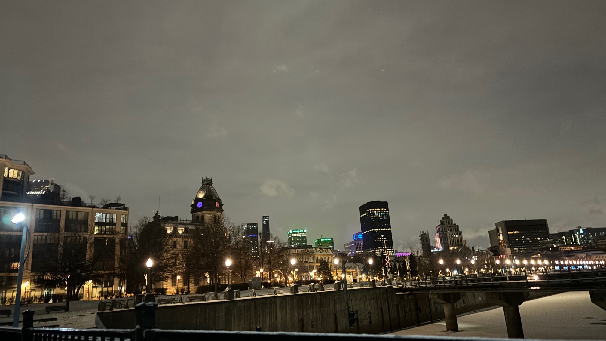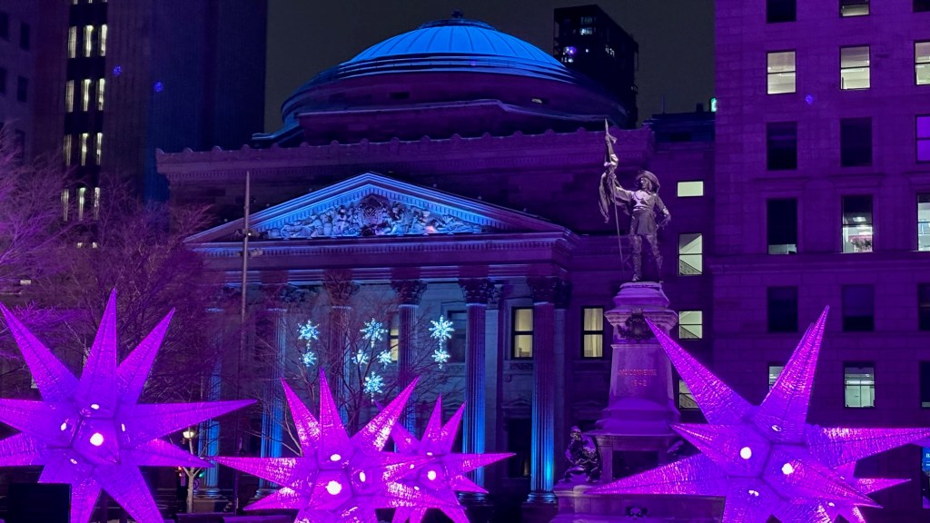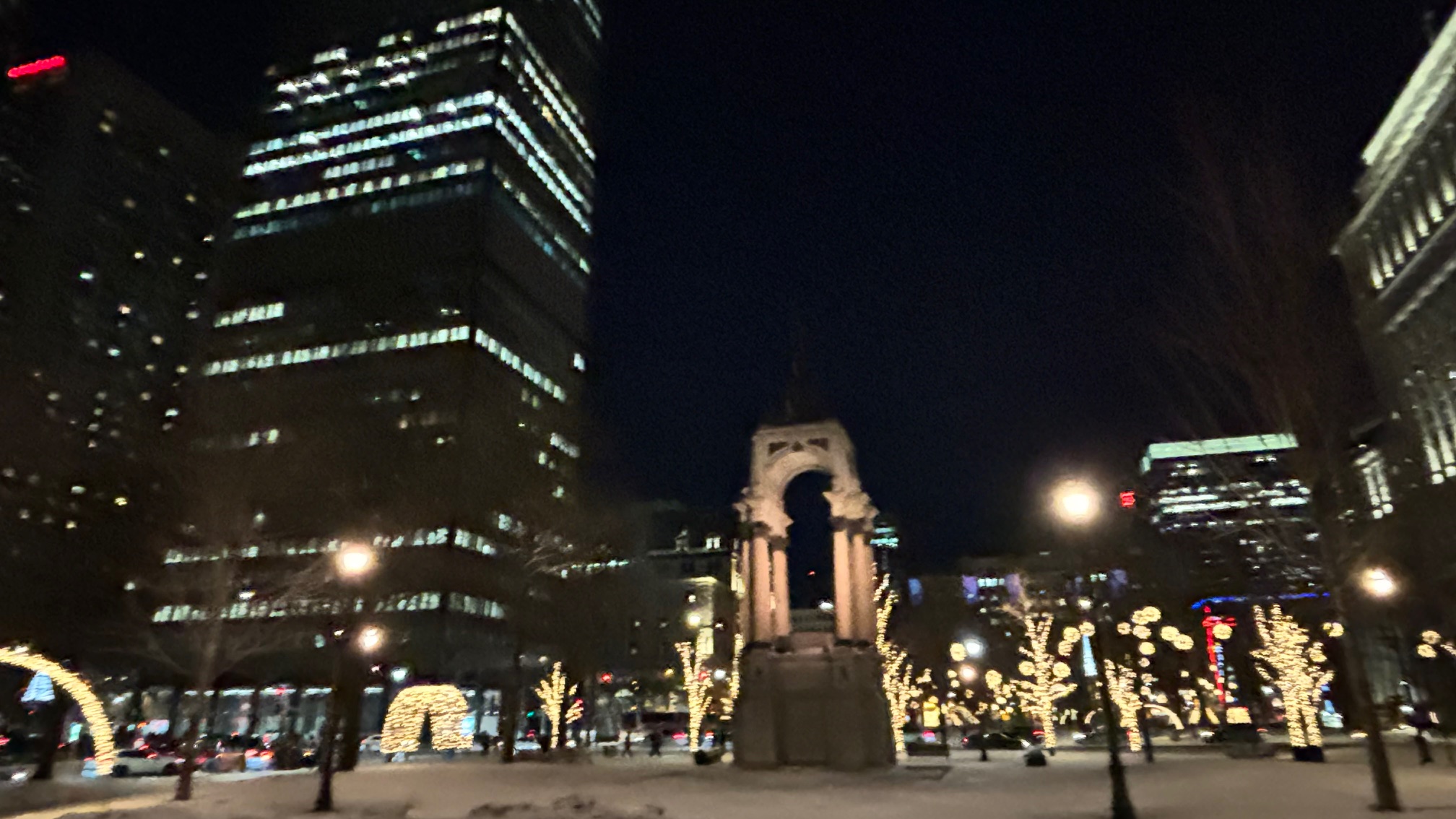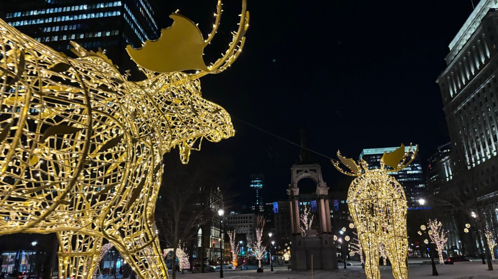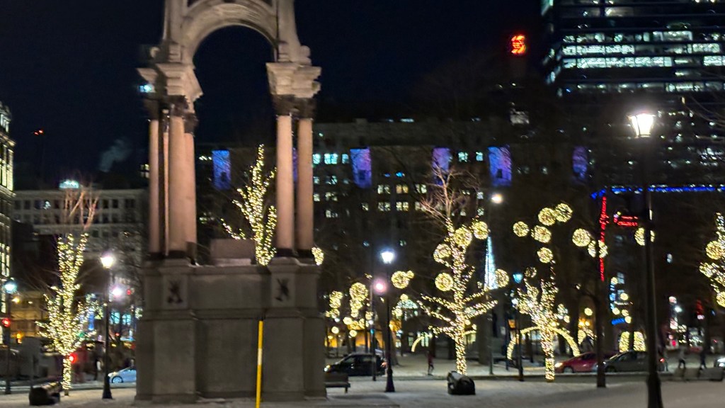 Walking around Montreal at night to get a feel for the city in the wintertime.